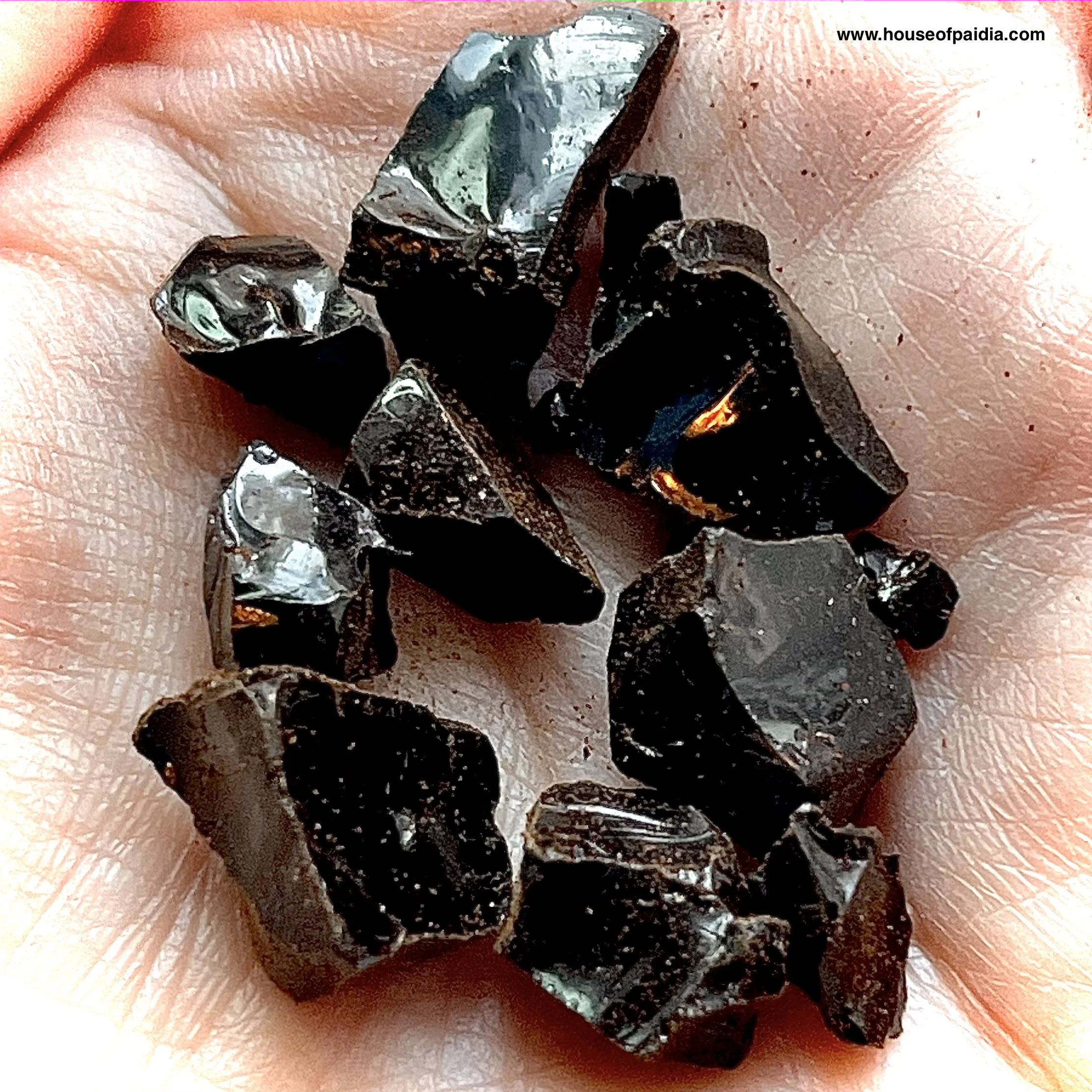 Close up of cutch resin. Cutch is an ancient dye and is derived from the acacia catechu tree. It has a pleasant sweet smell to it when added to a dye bath and produces a lovely reddish brown color on its own. I purchase my cutch from Hillcreek Fiber Studio.